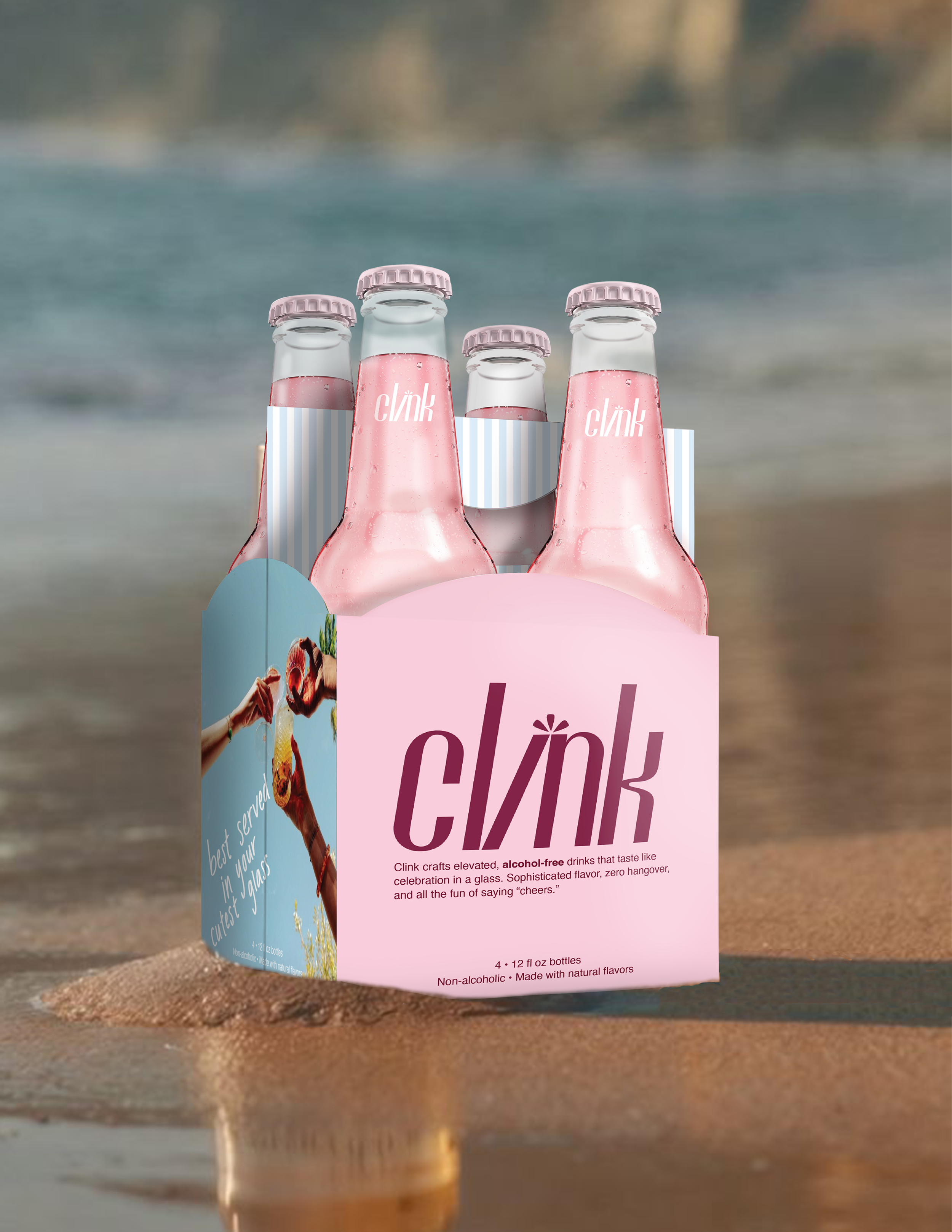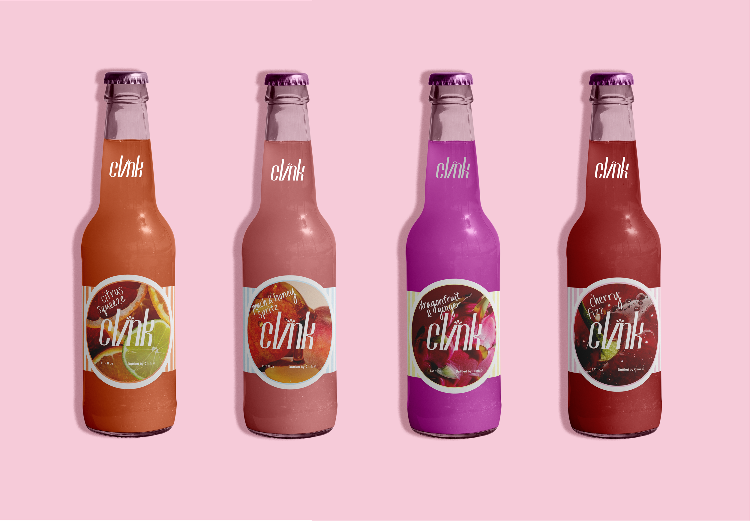 Clink is a mocktail brand I created for my Directed Projects class. I created everything from the ground up, including the logo, color palette, typography, brand voice, brand standards book, packaging, business applications, and marketing materials. The brand comes together with a clear sense of energy and intention.